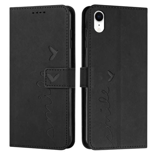 Funda de Cuero para Teléfono iPhone Xr Skin Feel Heart Pattern (Negro)