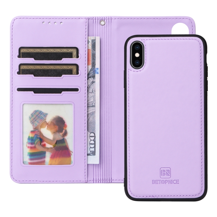 Funda para iPhone Xs Max Betopnice Bn-005 2 en 1 Cuero Desmontable (Púrpura Claro)