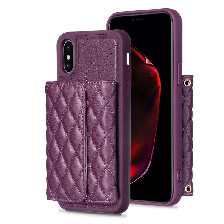 Estuche de teléfono iPhone Xs Max Cuero Rómbico con Billetera Horizontal (Púrpura Oscuro)