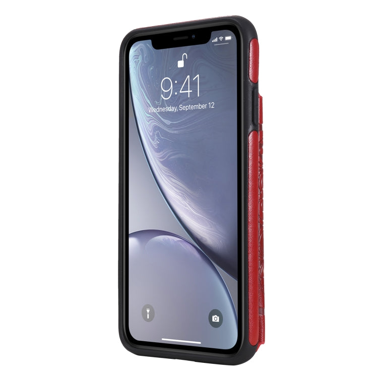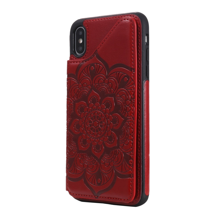 Estuche protector para iPhone Xs Max Flower Embossing Pattern a prueba de golpes con soporte y ranuras para tarjetas (Rojo)