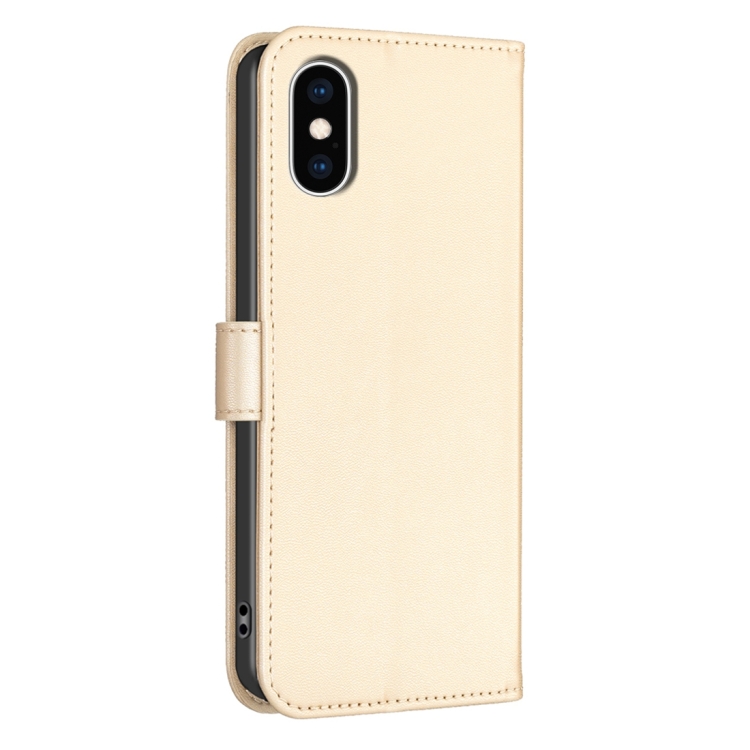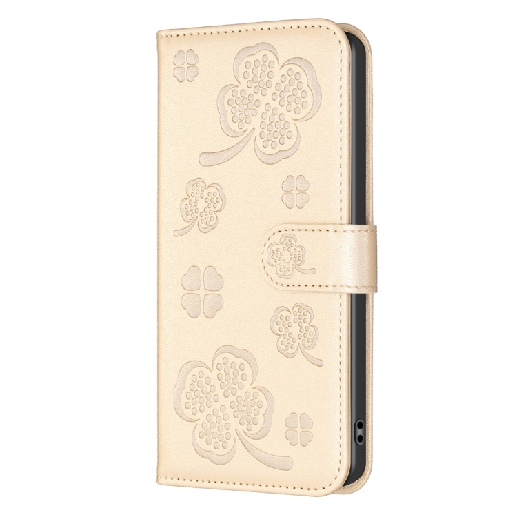 Funda para iPhone Xs Max Cuero con Relieve de Cuatro Hojas (Dorado)