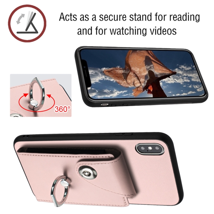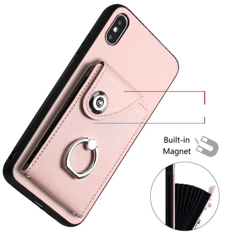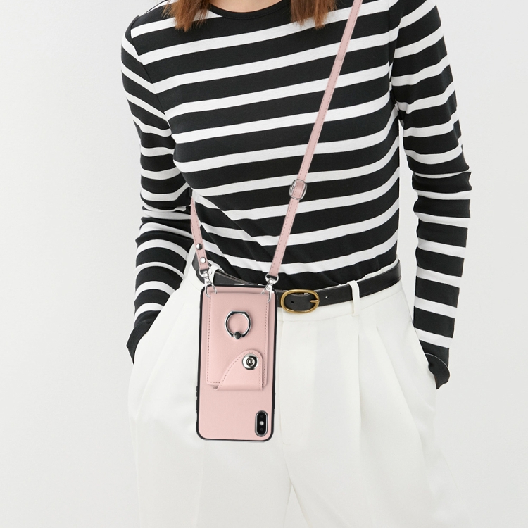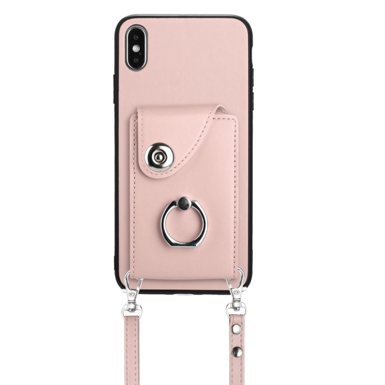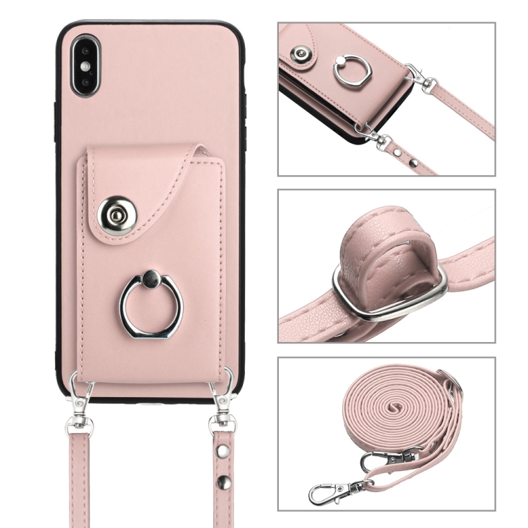 Funda para Teléfono iPhone Xs Max con Soporte para Anillo y Bolsa para Tarjeta con Cordón Largo (Rosa)