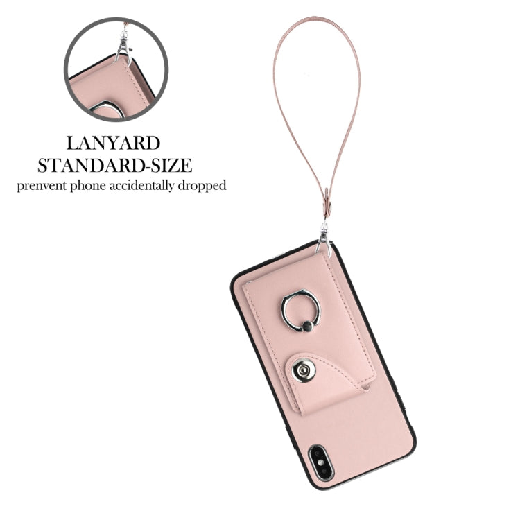 Funda para Teléfono iPhone Xs Max PU con Soporte Anillo Bolsa Tarjeta y Cordón (Rosa)