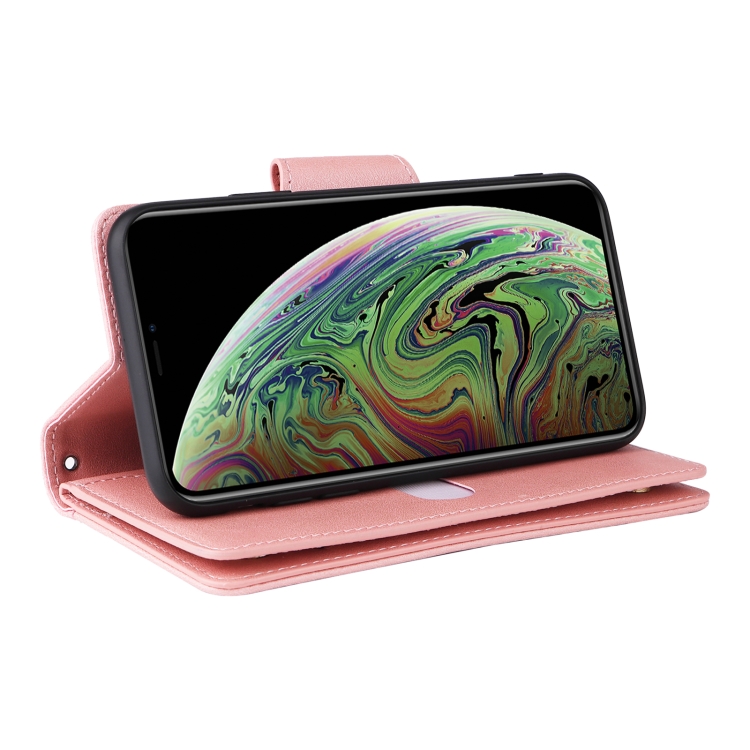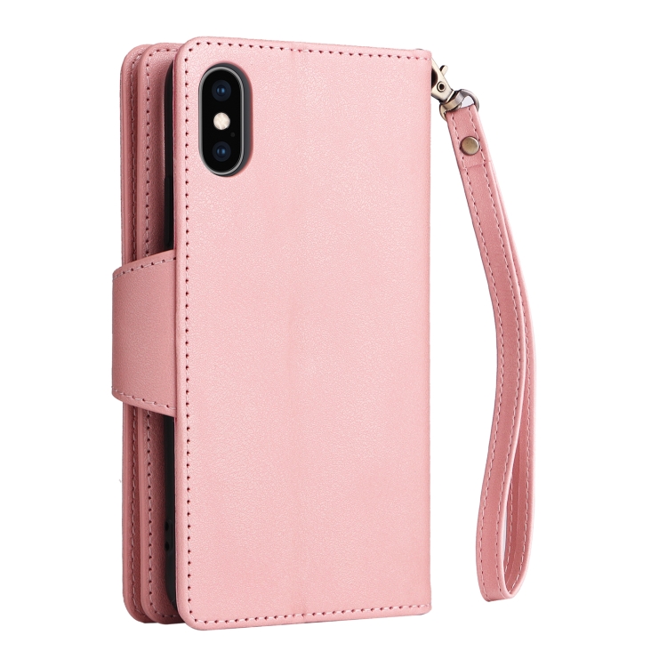 Funda de Cuero para iPhone Xs Max Rivet Buckle 9 Cards Tres Pliegues (Oro Rosa)