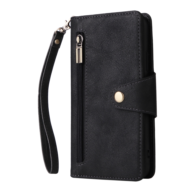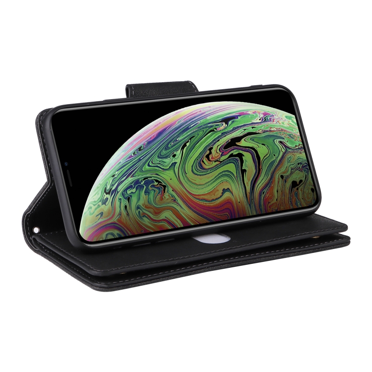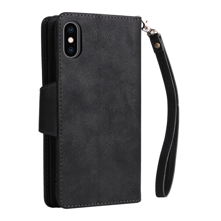 Funda de Teléfono iPhone Xs Max Rivet Buckle 9 Tarjetas Cuero Tres Pliegues (Negro)