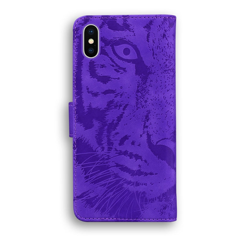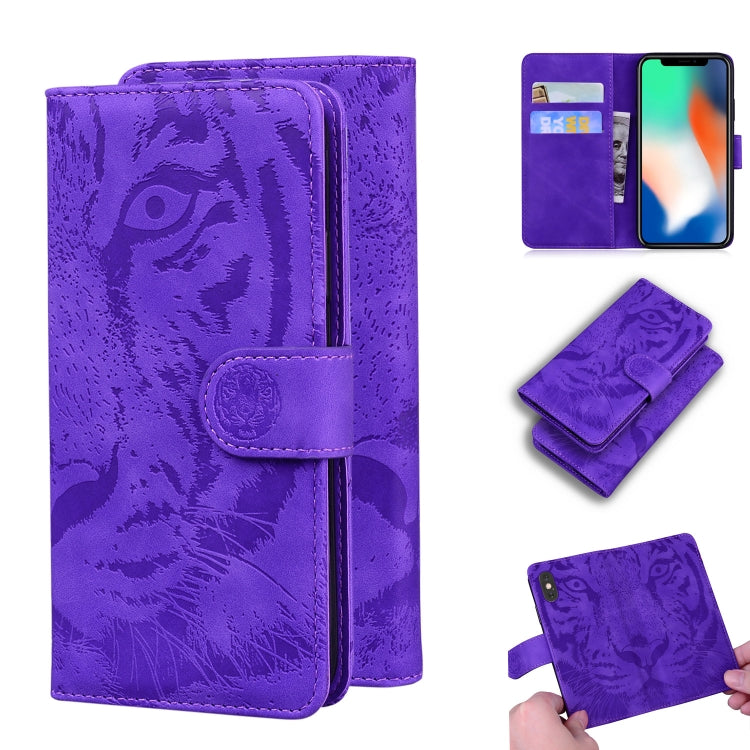 Estuche de Cuero para iPhone Xs Max Tiger Embossing con Tapa Horizontal Soporte y Ranuras para Tarjetas y Billetera (Púrpura)