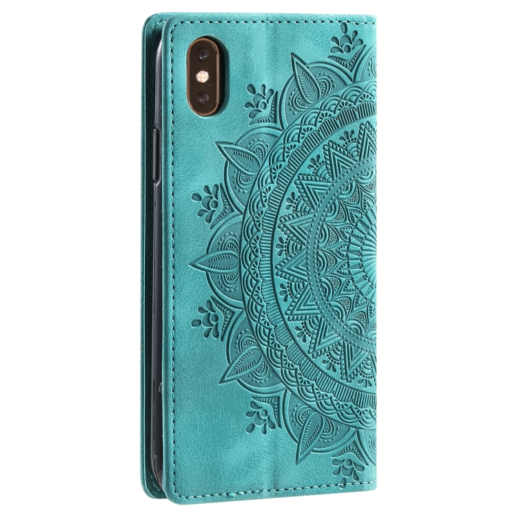 Funda de Cuero Magnética Totem para iPhone Xs Max en Relieve (Verde)