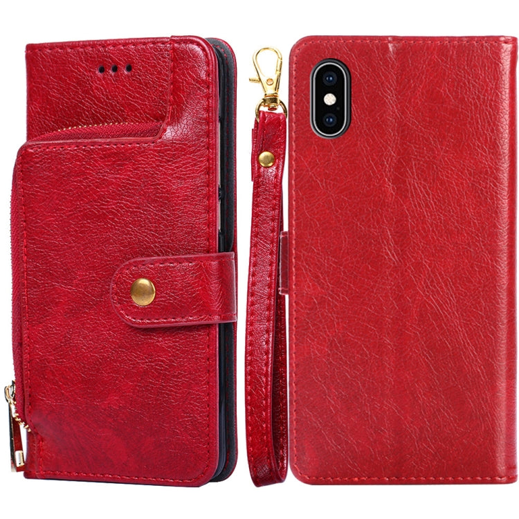Funda para iPhone Xs Max Zipper Bag PU + TPU Cuero con Tapa Horizontal Soporte Ranura Tarjeta Billetera Cordón (Rojo)