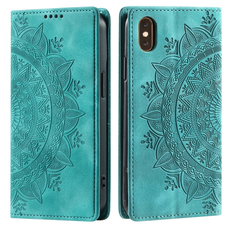 Funda para iPhone Xs / S Totem Cuero Magnética en Relieve (Verde)