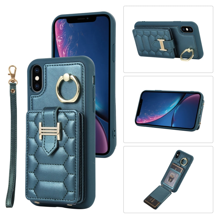 Funda para Teléfono iPhone Xs Vertical Card Bag Ring Holder con Doble Cordón (Verde Oscuro)