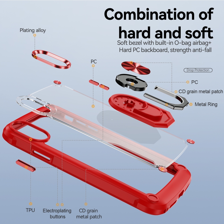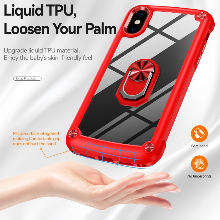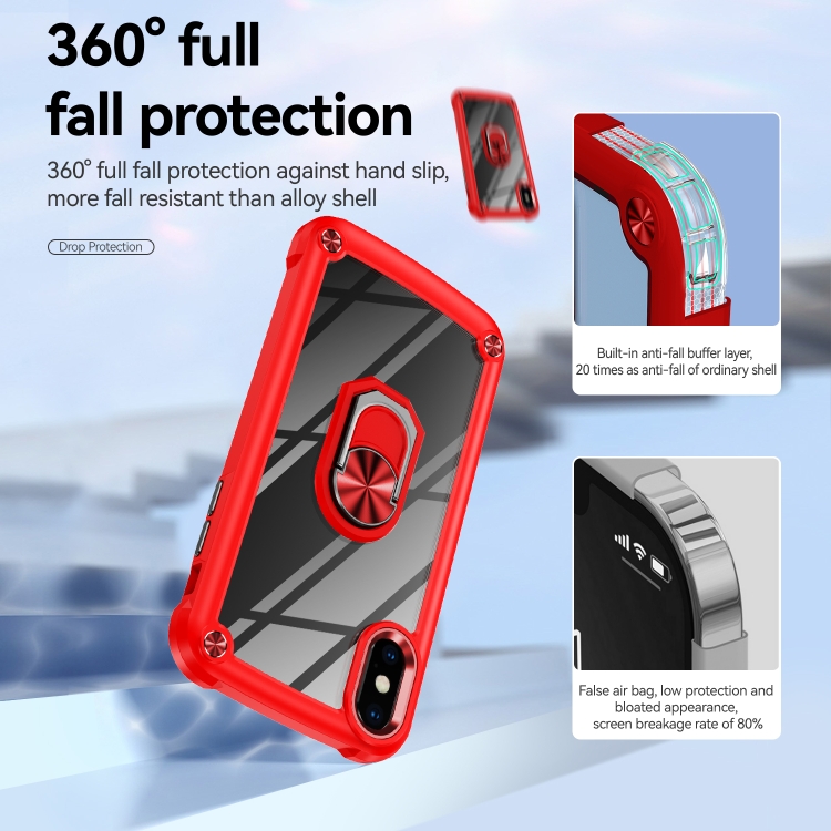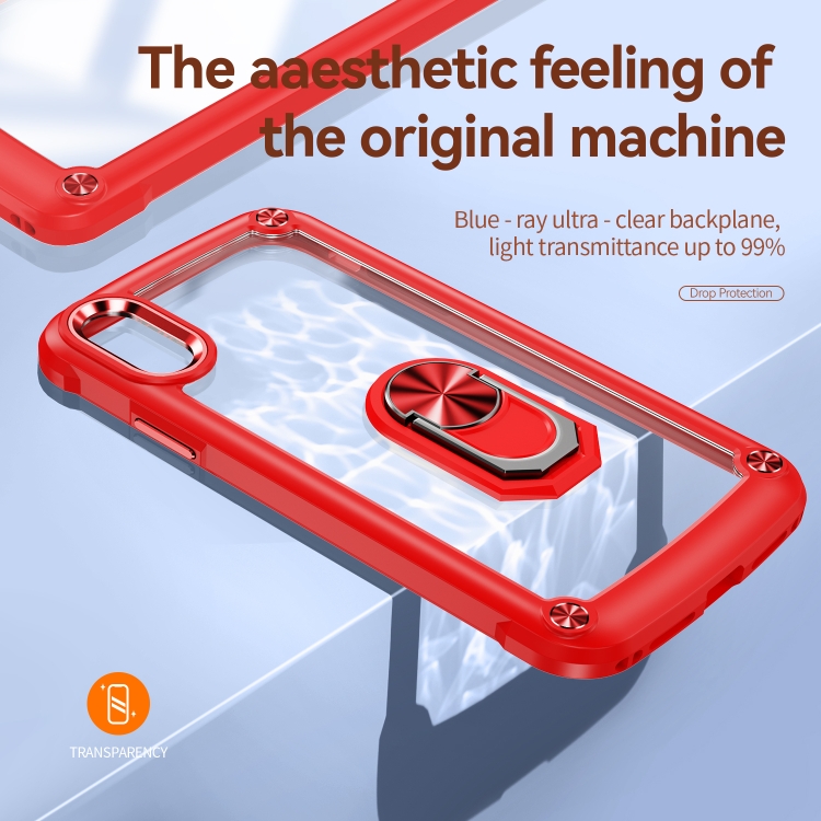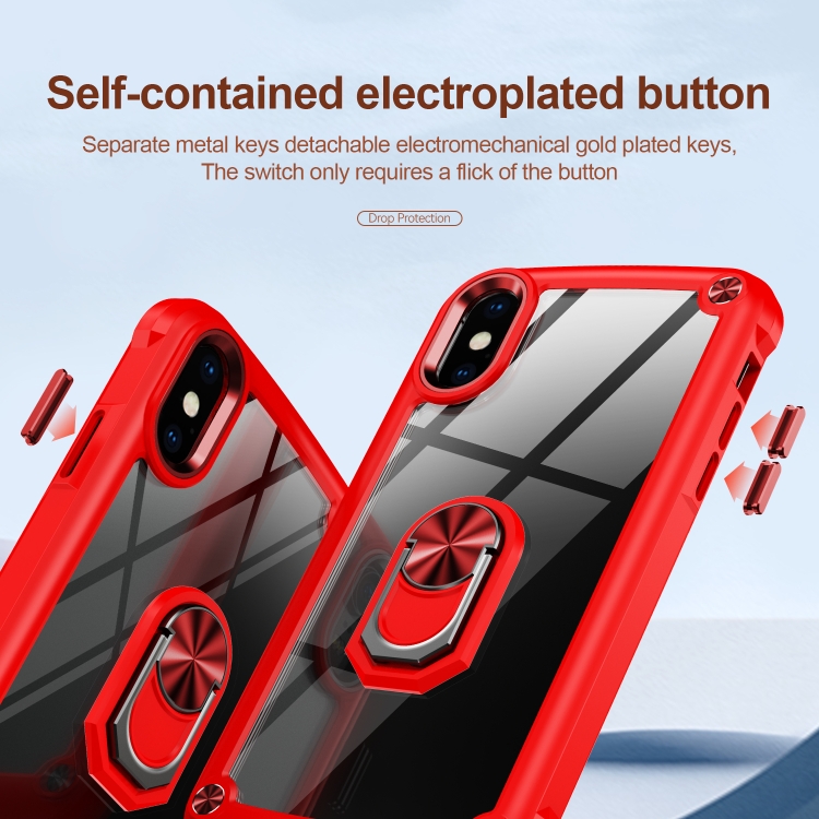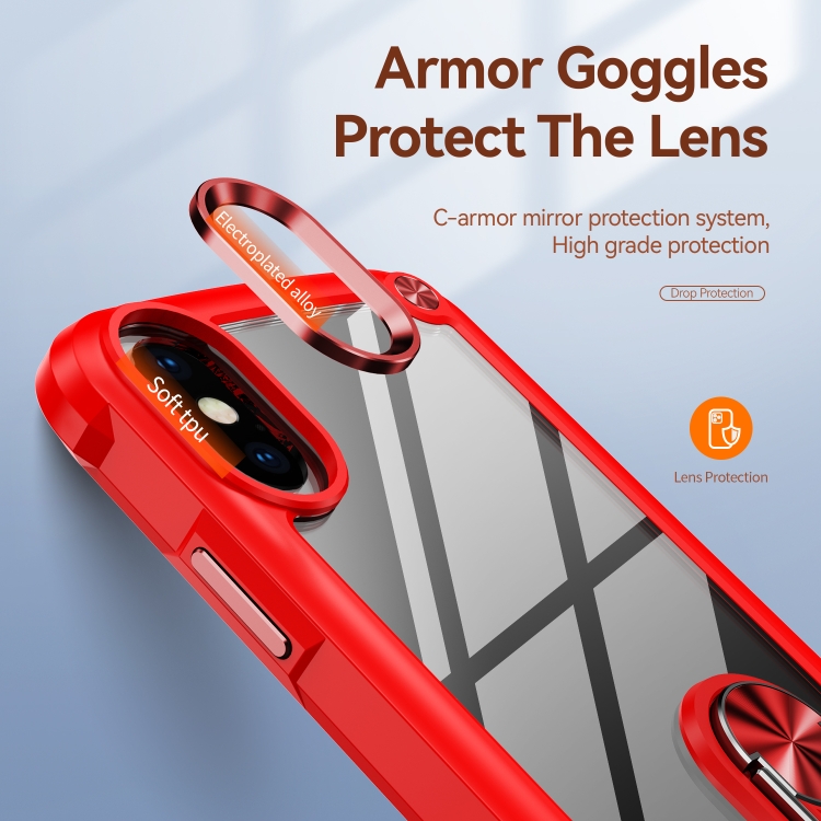 Estuche para Teléfono iPhone Xs / X TPU + PC con Protección de Lente y Soporte para Anillo (Rojo)