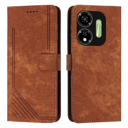 Funda de Cuero para Itel P55 5G con Patrón de Rayas y Cordón (Marrón)