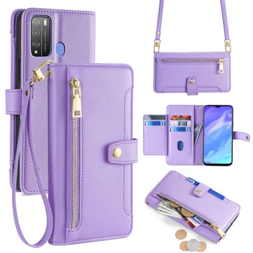 Funda de Cuero para Itel Vision 1 Pro con Billetera, Cremallera y Textura de Oveja (Púrpura)