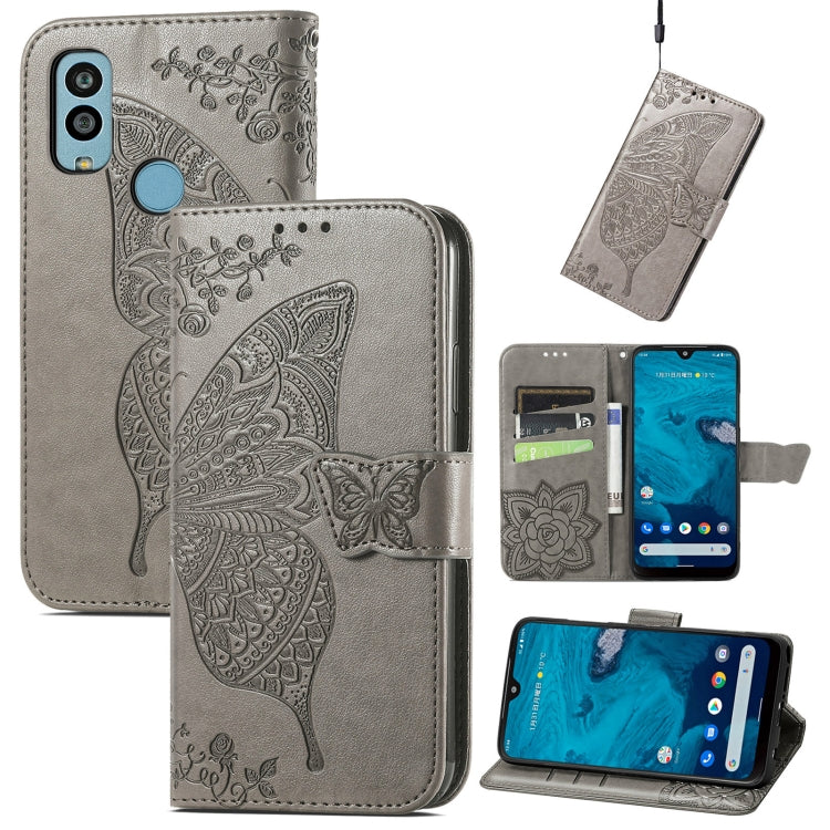 Estuche para Teléfono Kyocera Android One S10 Butterfly Love Flower Cuero En Relieve (Gris)