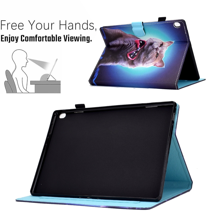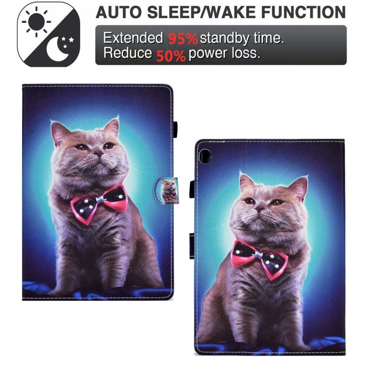 Funda para Lenovo Tab M10 con Coser Pen Slot y diseño Gato de la Corbata de Lazo