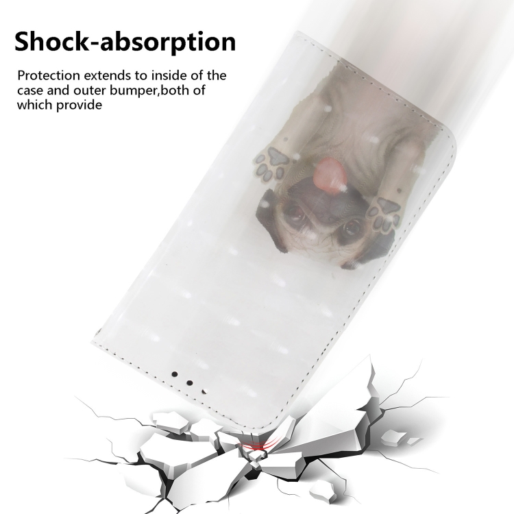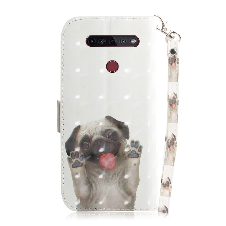 Funda de Cuero Abatible Horizontal para LG K41S K51S con Dibujo 3D Soporte Ranuras Tarjetas Billetera Cordón (Pug)
