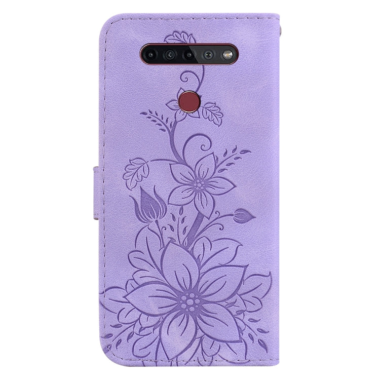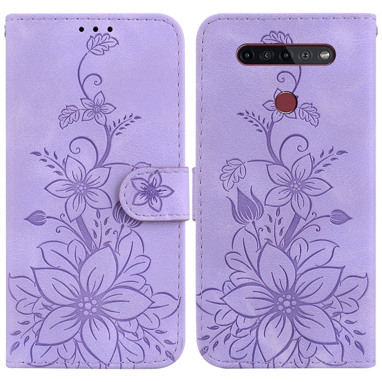 Funda de Cuero con Relieve Lily para LG K41S y K51S (Púrpura)
