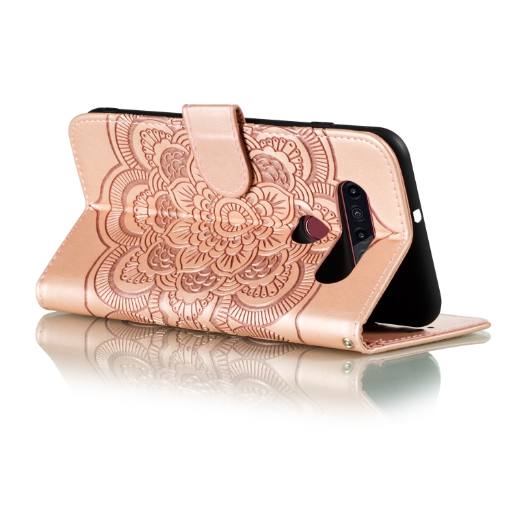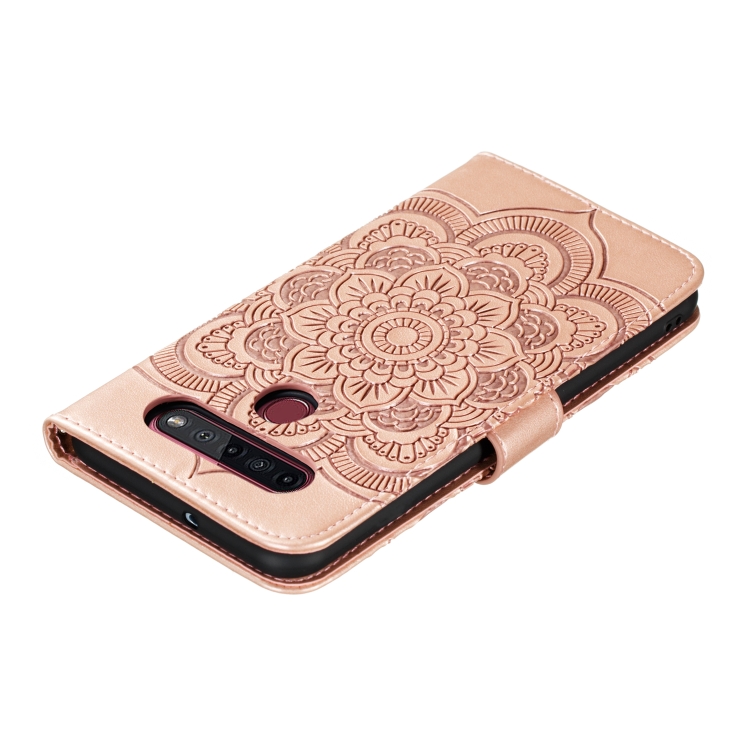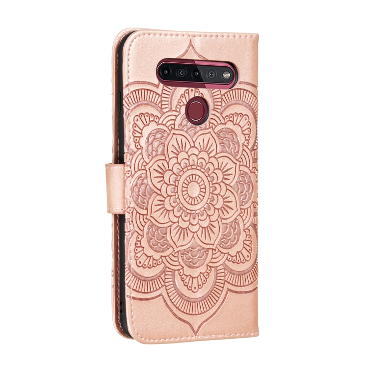 Funda Cuero PU LG K41S K51S Mandala Relieve con Tapa Horizontal Soporte Ranuras Tarjetas Cordón (Oro Rosa)