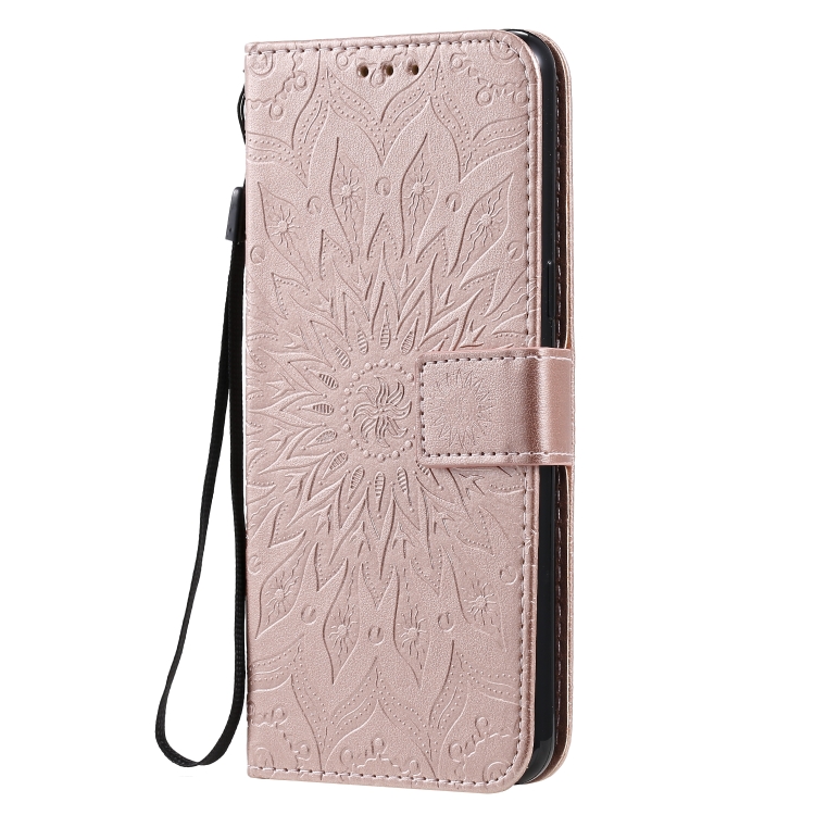 Funda de Cuero PU para LG K50S con Patrón de Girasol, Tapa Horizontal, Soporte, Ranuras y Cordón (Oro Rosa)