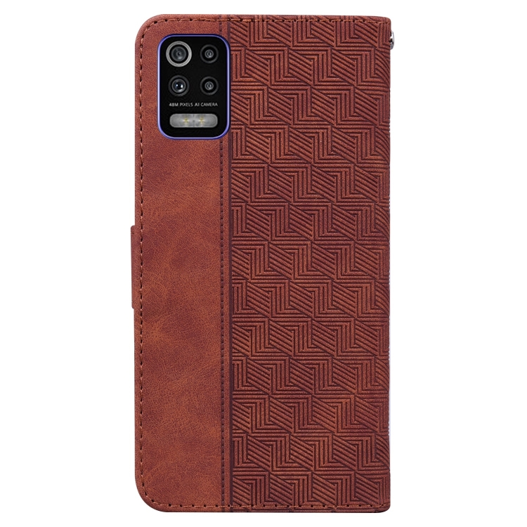Funda de Cuero Geométrico en Relieve para LG K52 / K62 / Q52 (Marrón)