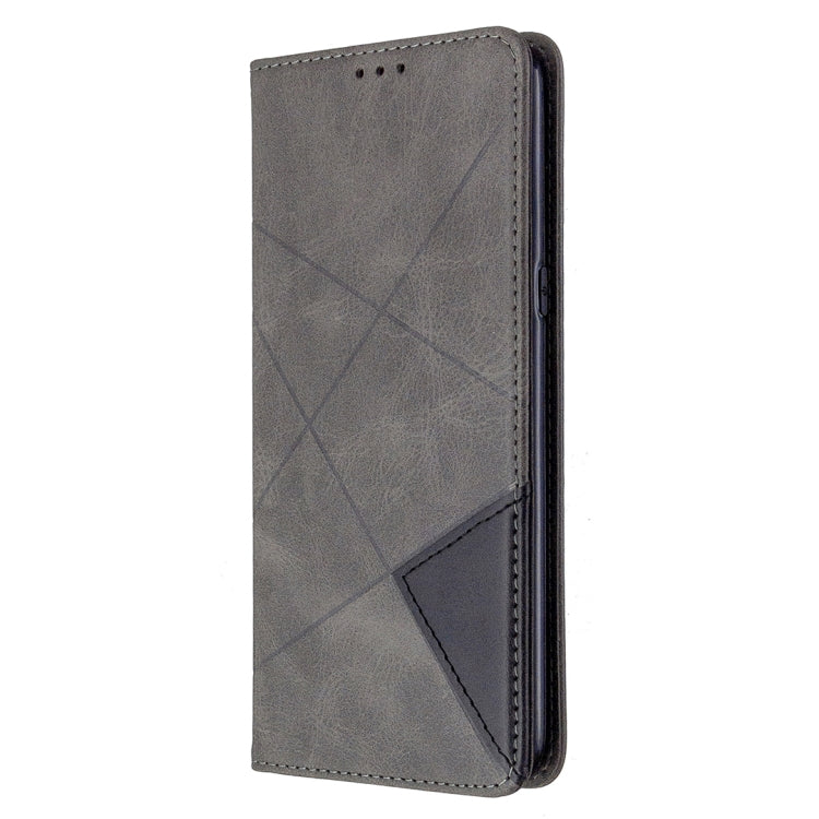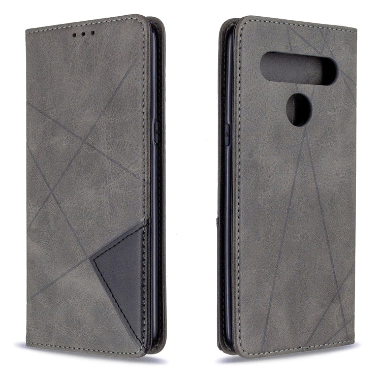 Estuche de Cuero Magnético para LG K61 con Tapa Horizontal, Textura de Rombo, Soporte y Ranuras para Tarjetas (Gris)