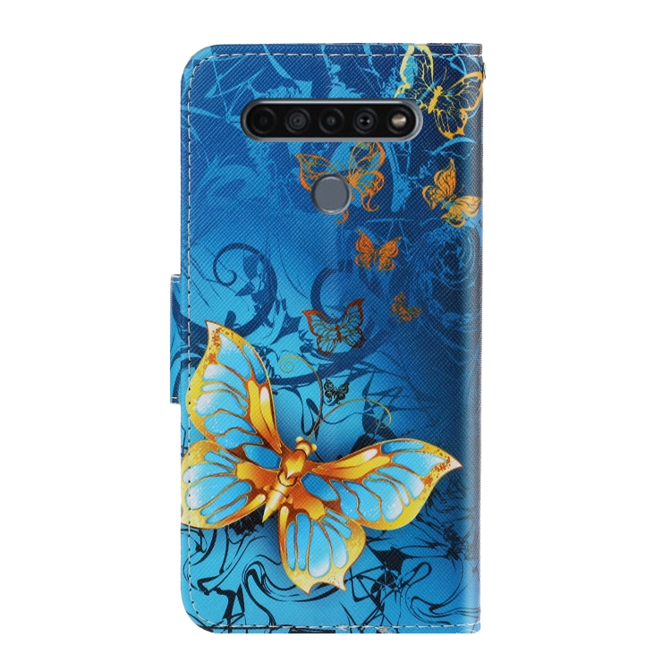 Funda de Cuero Abatible Horizontal para LG K61 con Soporte, Ranura para Tarjeta y Billetera (Mariposa de Jade)