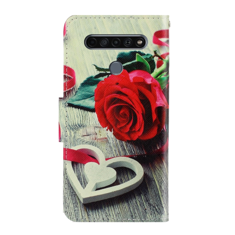 Funda de Cuero para LG K61 con Tapa Horizontal, Soporte, Ranura para Tarjeta y Billetera (Rosa Roja)