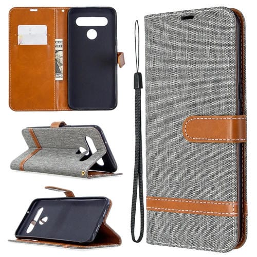 Funda de Cuero para LG K61 con Tapa Horizontal, Soporte, Ranuras para Tarjetas, Billetera y Cordón (Gris)