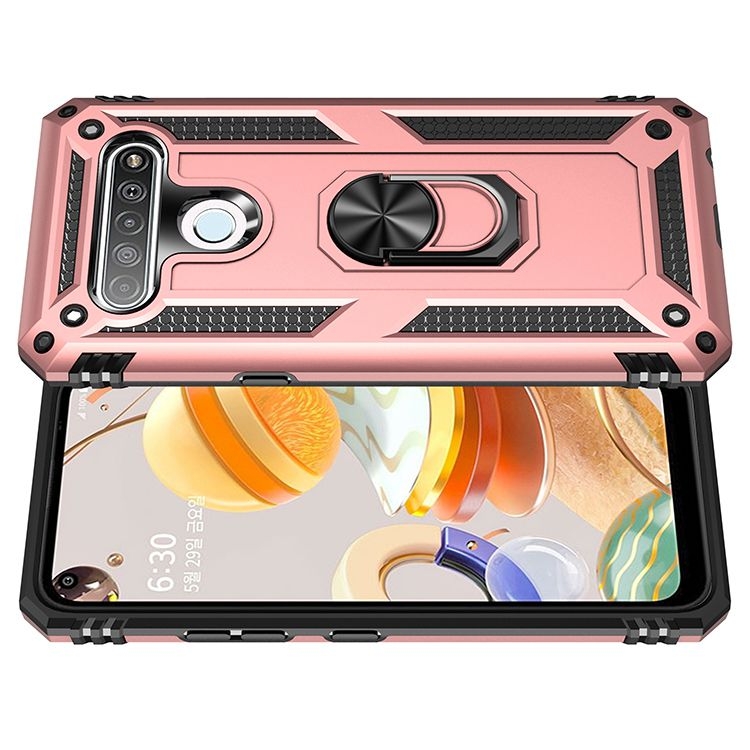 Funda Protectora TPU + PC para LG Q61 con Soporte Giratorio 360° (Oro Rosa)