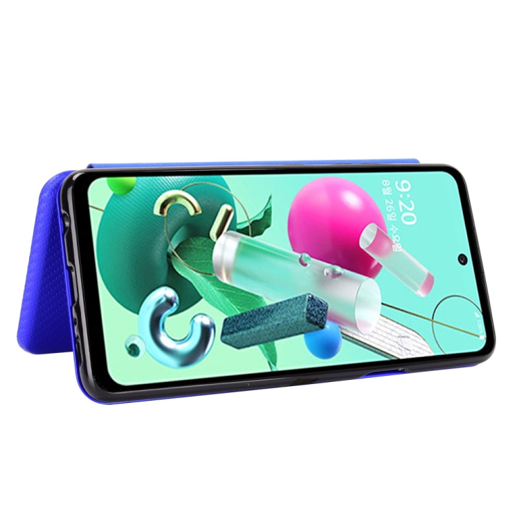 Funda de Cuero para LG Q92 5G con Tapa Magnética Horizontal y Ranura para Tarjeta (Azul)