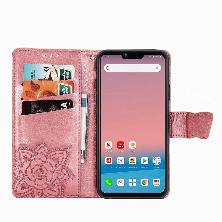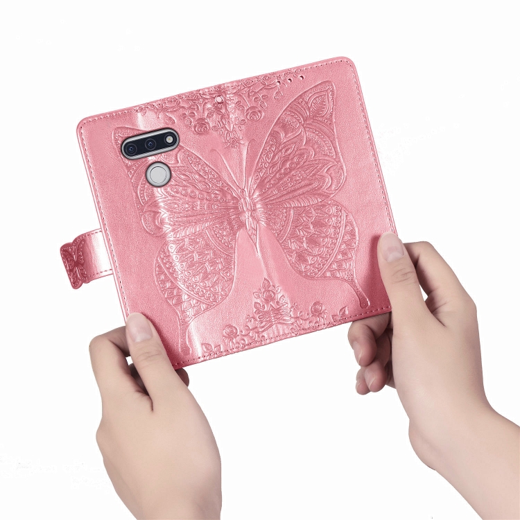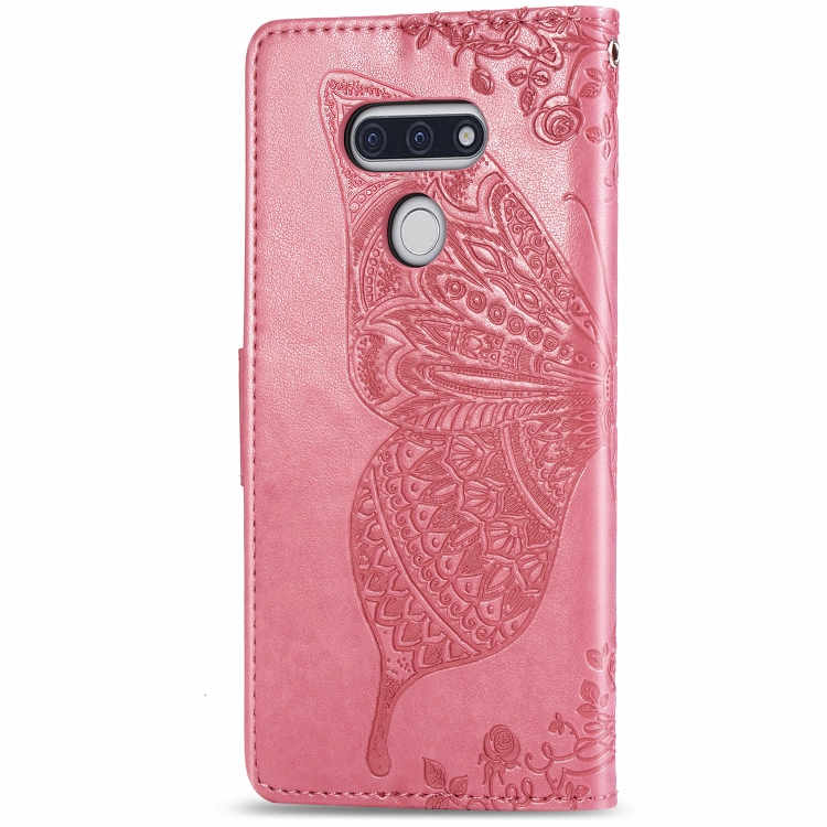 Funda de Cuero para LG Style3 L-41A Butterfly Love Flower con Tapa Horizontal, Soporte, Ranura para Tarjeta y Cordón (Rosa)