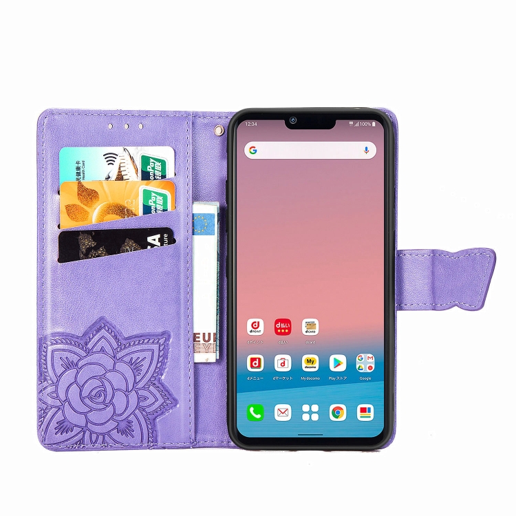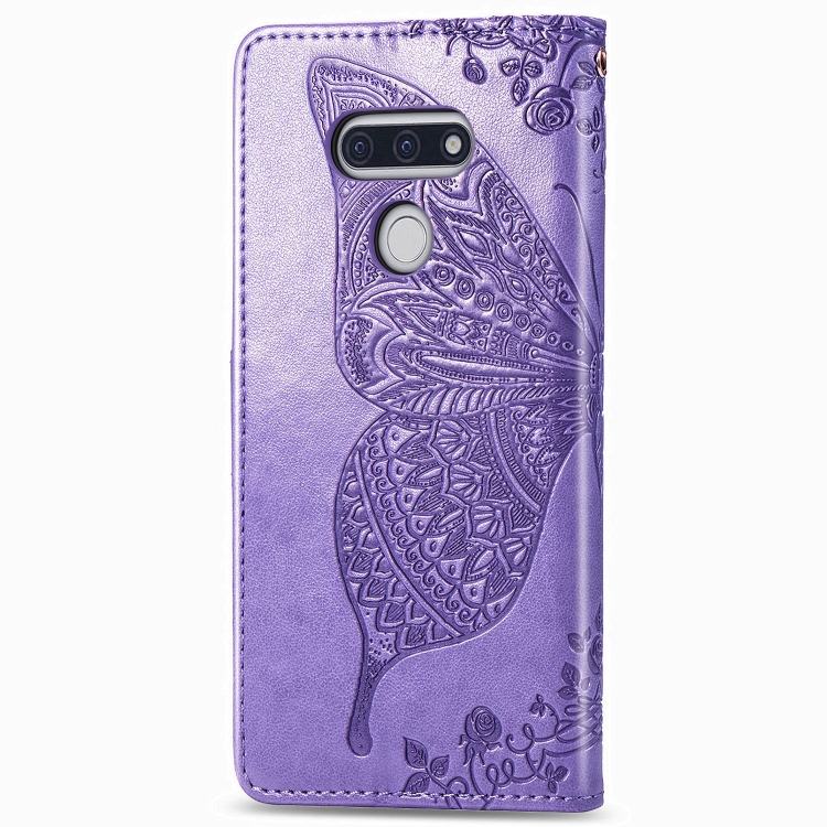 Funda de Cuero para LG Style3 L-41A Butterfly Love Flower con Tapa Horizontal, Soporte, Ranura para Tarjeta y Cordón (Morado Claro)