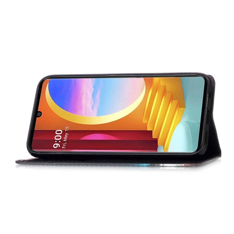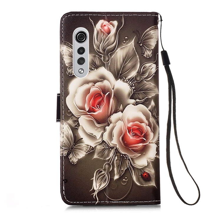 Funda de Cuero Horizontal Flip para LG Velvet 2 Pro con Titular, Tarjeta, Wallet y Lanyard (Roses On Black)