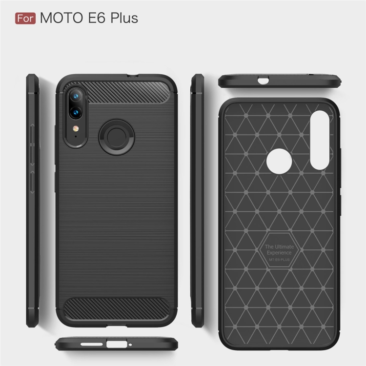 Funda TPU Fibra de Carbono para Moto E6 Plus con Textura Cepillada (Negro)