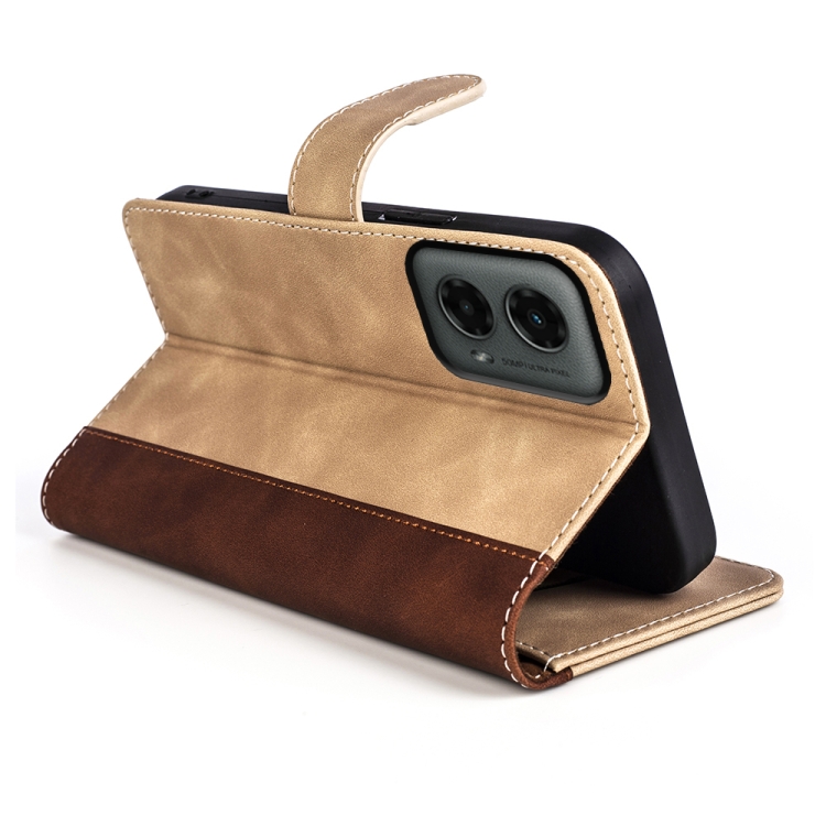 Funda de Cuero para Motorola Moto G84 con Tapa Horizontal y Costura (Amarillo)