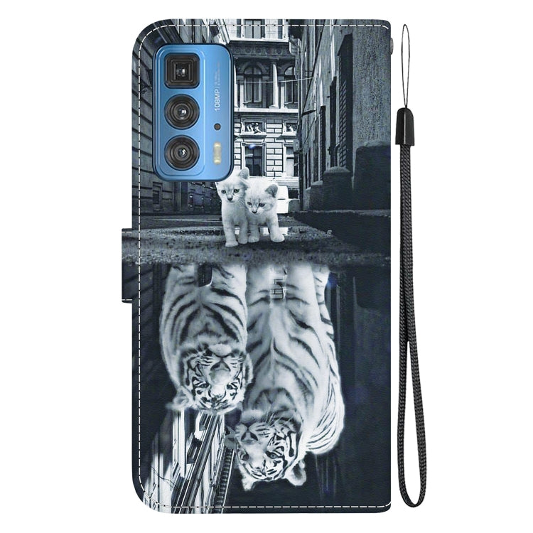 Funda de Cuero para Motorola Edge 20 Pro con Dibujo Coloreado y Textura de Cristal (Reflejo de Tigre Gato)
