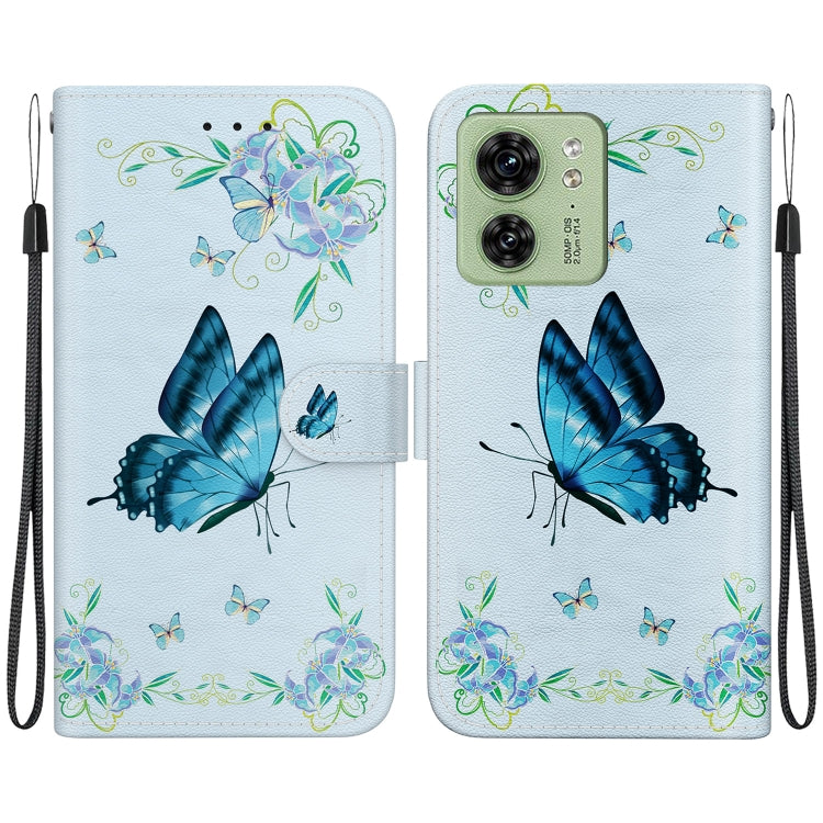 Funda de Cuero para Motorola Edge 40 con Dibujo Coloreado y Textura de Cristal (Pensamientos Azules)