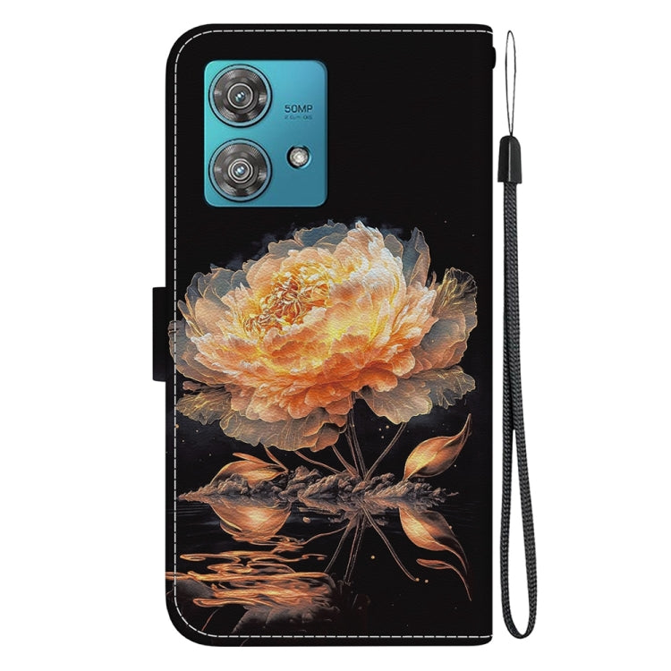 Funda de Cuero para Motorola Edge 40 Neo con Dibujo Coloreado Crystal Texture (Peonía Dorada)