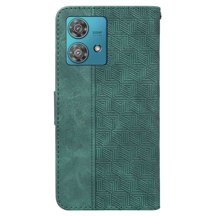 Funda de Cuero para Motorola Edge 40 Neo con Relieve Geométrico (Verde)