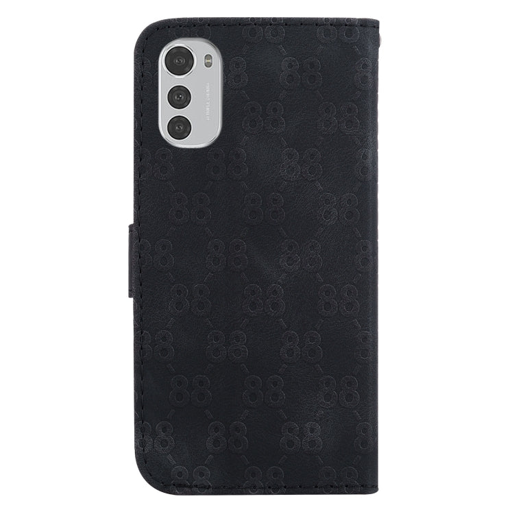 Estuche para Motorola Moto E32 de Cuero en Relieve con Doble Forma de 8 (Negro)