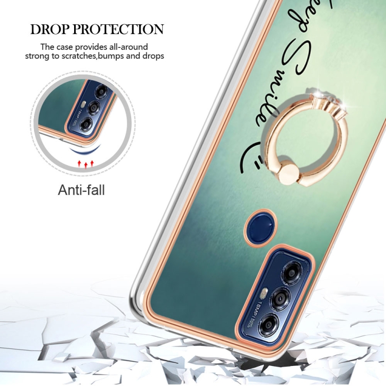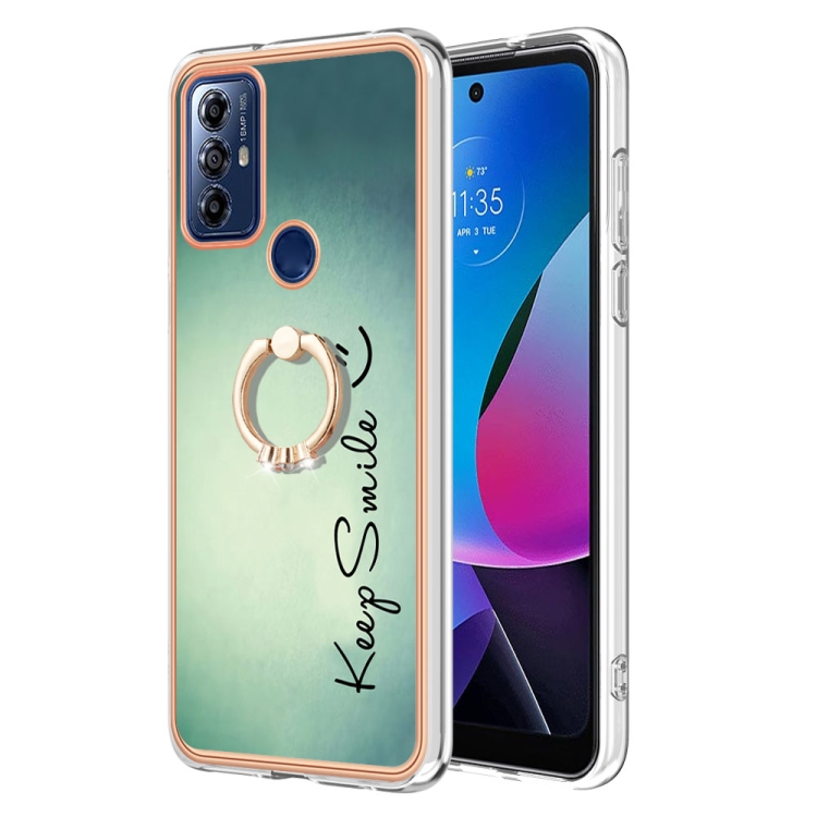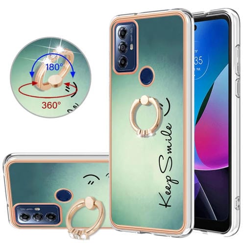 Caja para Motorola Moto G Play 2023 IMD Doble Cara Galvanizada con Soporte para Anillo (Sonrisa)