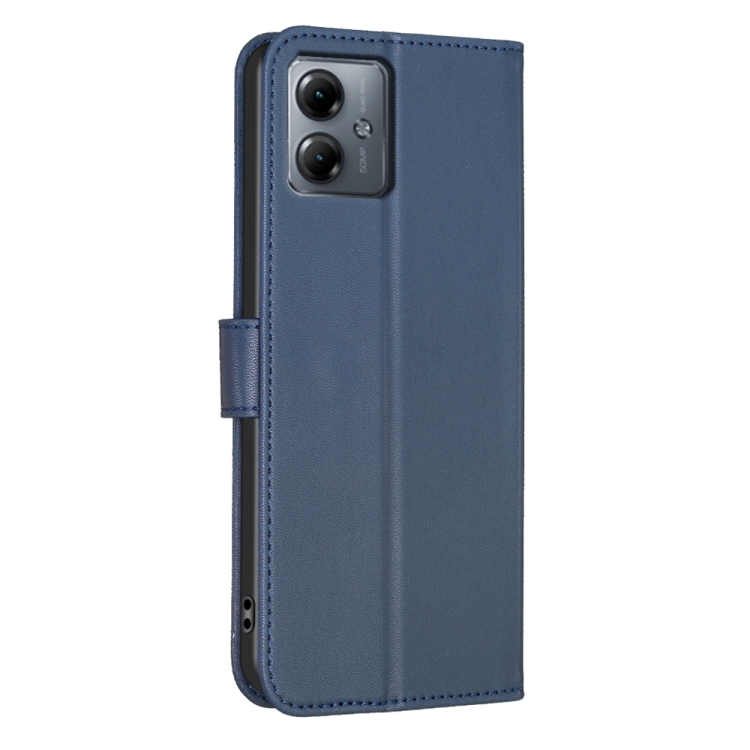Funda de Cuero para Motorola Moto G14 4G con Relieve de Cuatro Hojas (Azul)