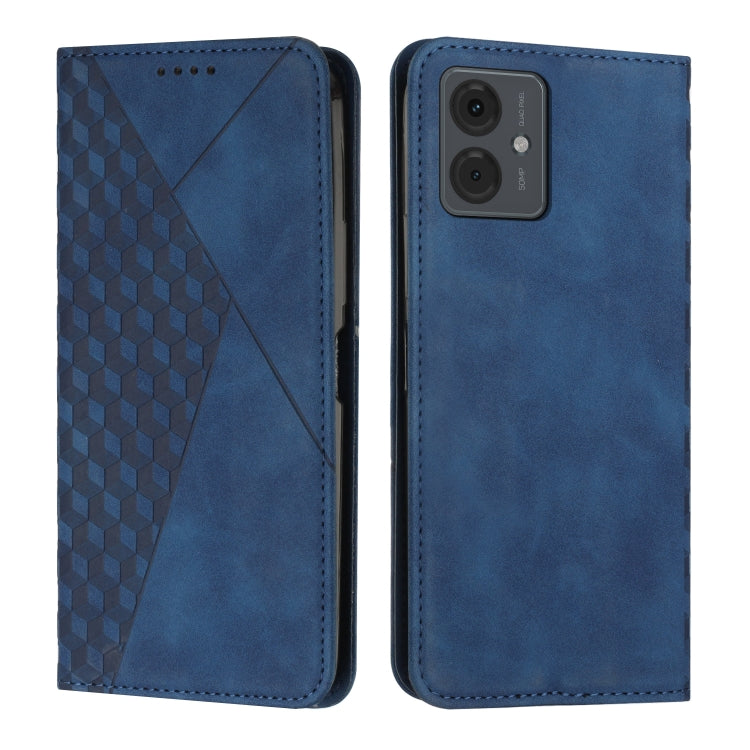 Funda de Cuero Magnética para Motorola Moto G14 Diamond Splicing Skin Feel (Azul)