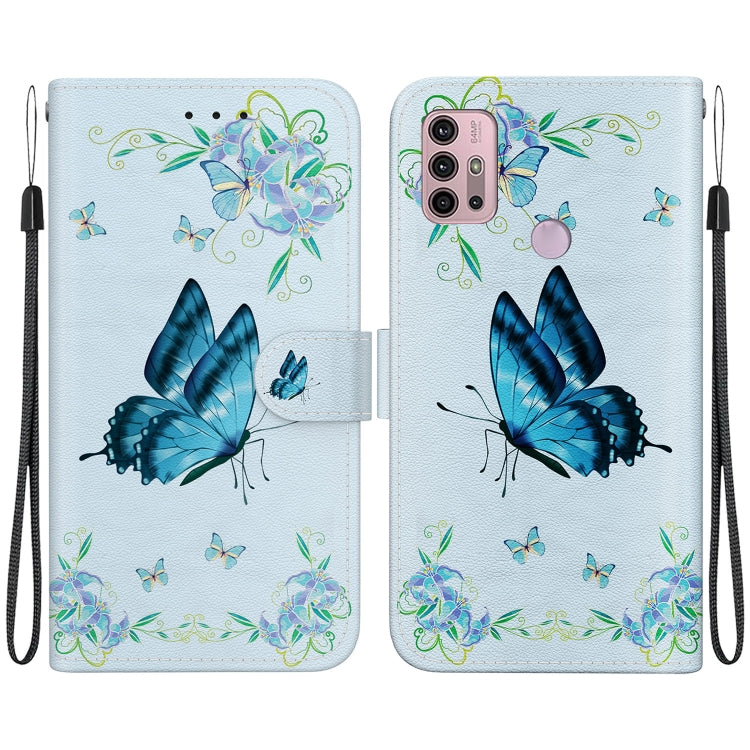 Funda de Cuero para Motorola Moto G30 G10 G20 con Dibujo Coloreado y Textura de Cristal (Pensamientos Azules)