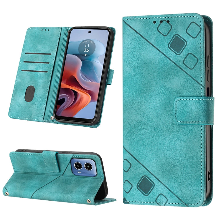 Funda de Cuero para Motorola Moto G34 con Relieve y Sensación de Piel (Verde)