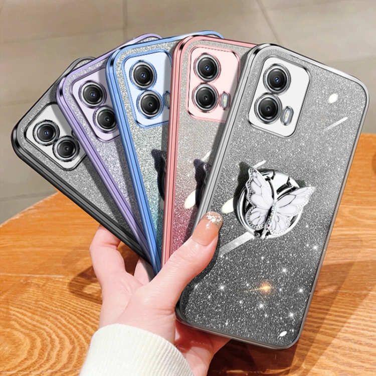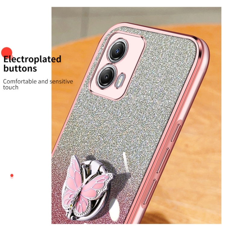 Funda TPU para Motorola Moto G53 5G con Soporte de Mariposa y Brillo Degradado (Plata)