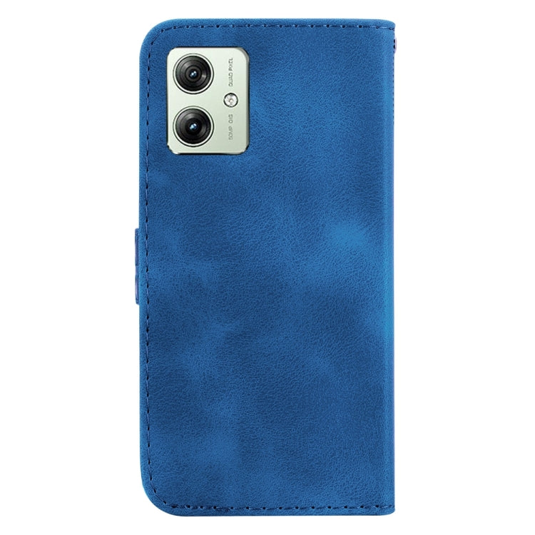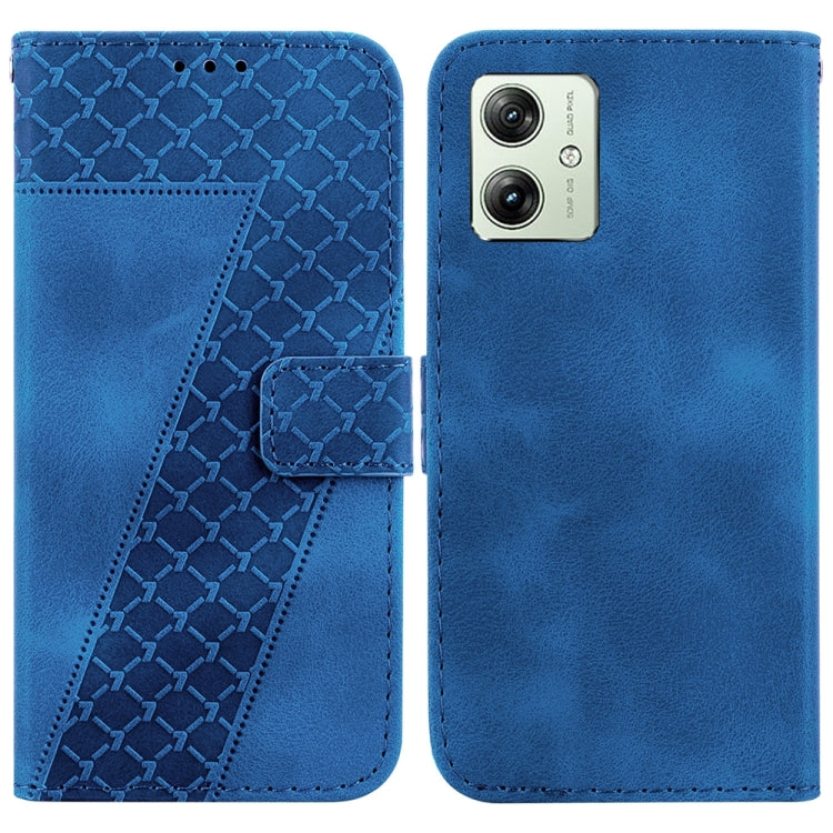 Funda de Cuero para Motorola Moto G54 con Relieve en Forma de 7 (Azul)