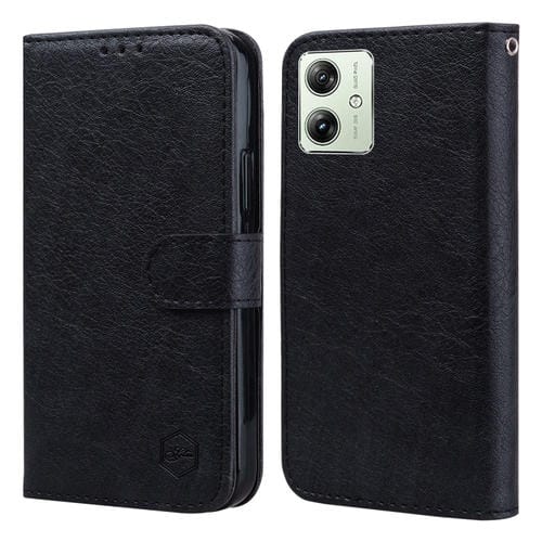 • 1x Funda para Motorola Moto G54 Sensación de Piel Textura de Cuero Aceitoso PU + TPU (Negro)