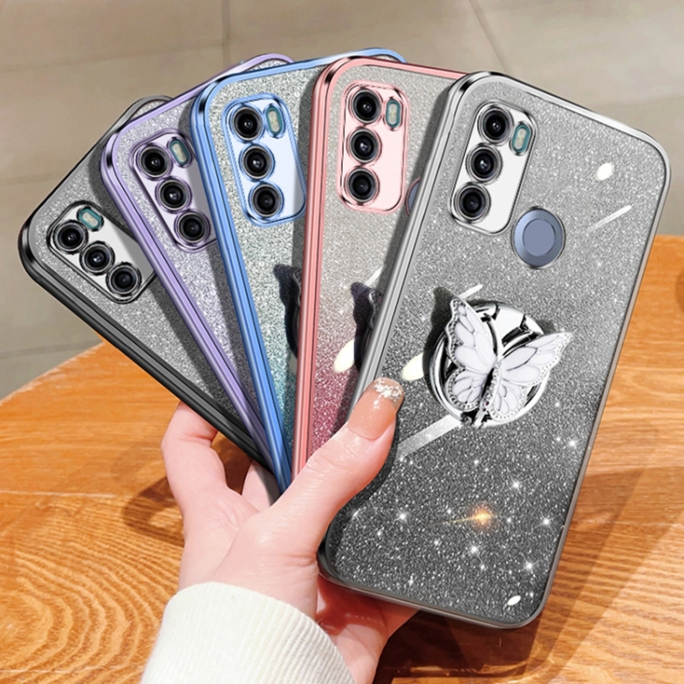 Funda TPU para Motorola Moto G60 con Soporte de Mariposa y Brillo Degradado (Azul Sierra)