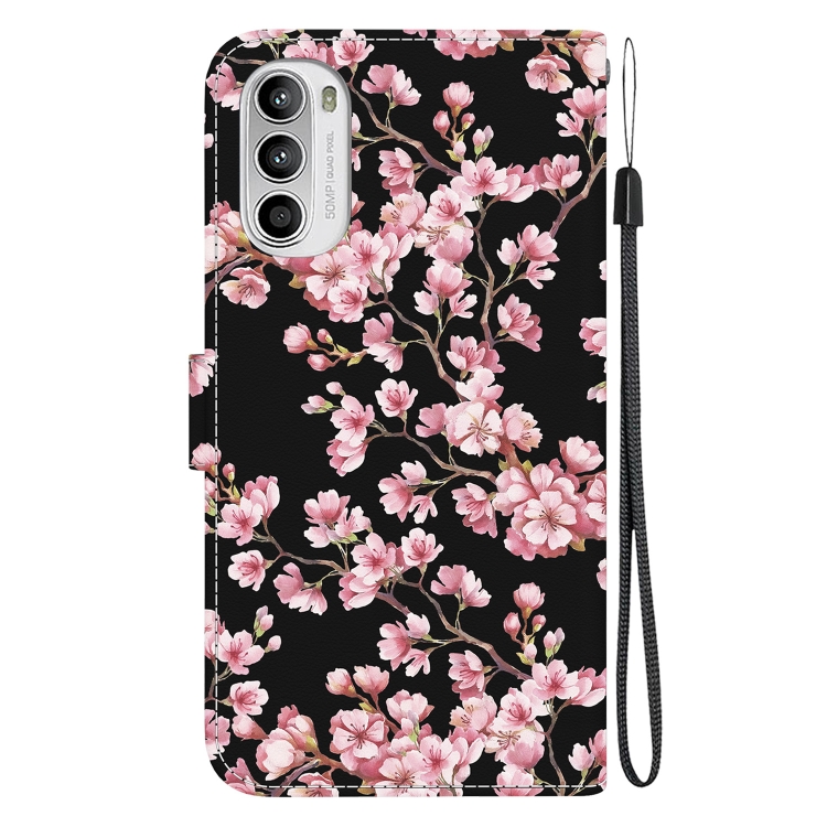 Funda de Cuero para Motorola Moto G62 5G con Dibujo Coloreado y Textura de Cristal (Flor de Ciruelo)